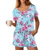 Ekouaer Womens Pajamas Short Sleeve Lounge Set Crew Neck Tops and Ruffle Shorts Pj Sets Soft Sleepwear with Pockets Blue Rose Print,XX-Large