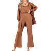 Ekouaer Womens Silk 3 Piece Pajamas Satin Camisole Sleepwear Set Button Down Long Sleeve Pjs with Pants Light Brown, Large