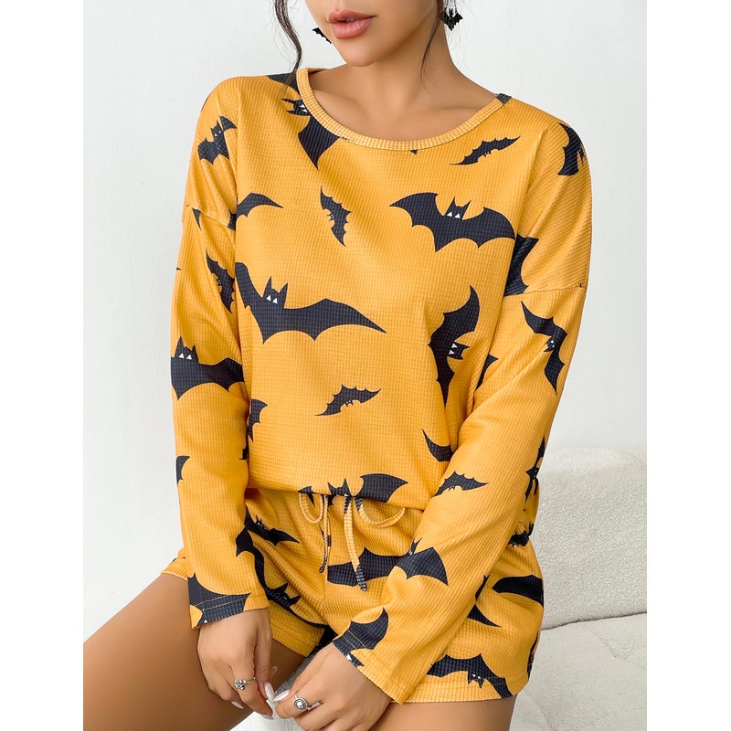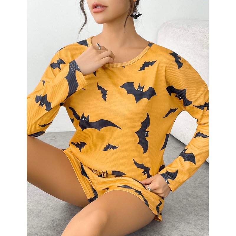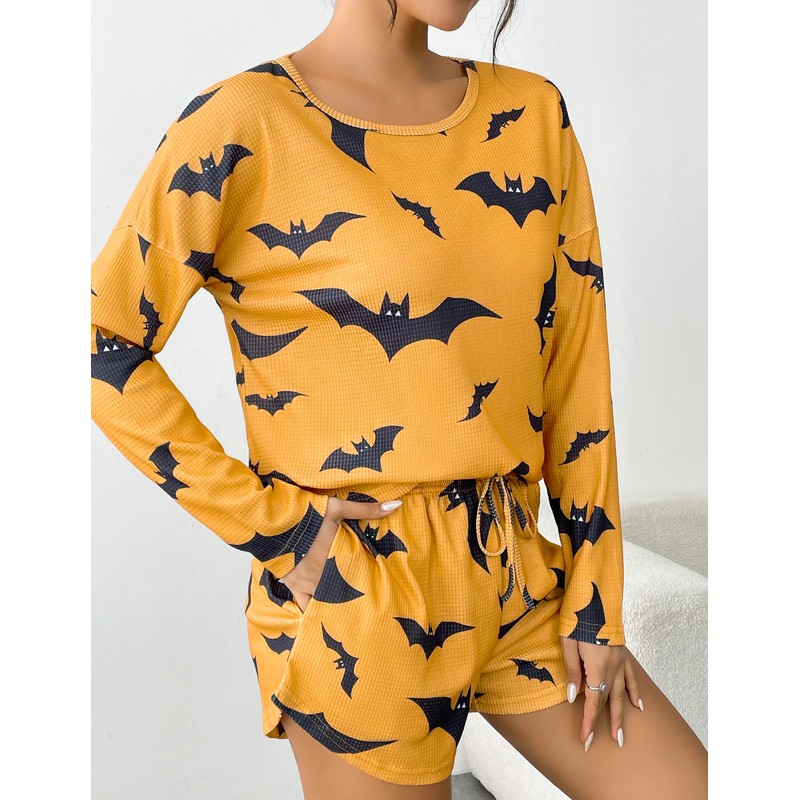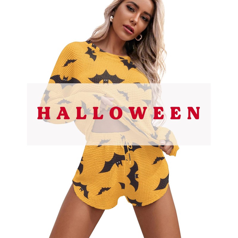 Ekouaer Womens Waffle Knit Pajama Sets Long Sleeve Top and Shorts Matching Lounge Set Loungewear Sweatsuit with Pockets
