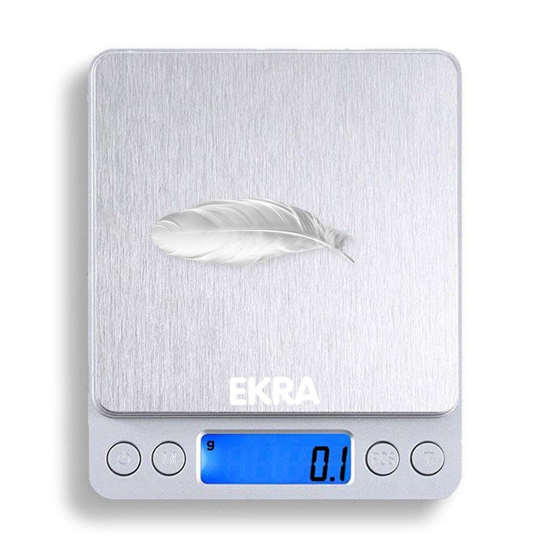 - Precise Measurements: The EKRA digital scale built with high precision sensor system, has a wide weight range and provides you with instant and accurate results from 0.1g to 3kg. Made as cooking scale, baking scale, jewelry scale, and coffee scale