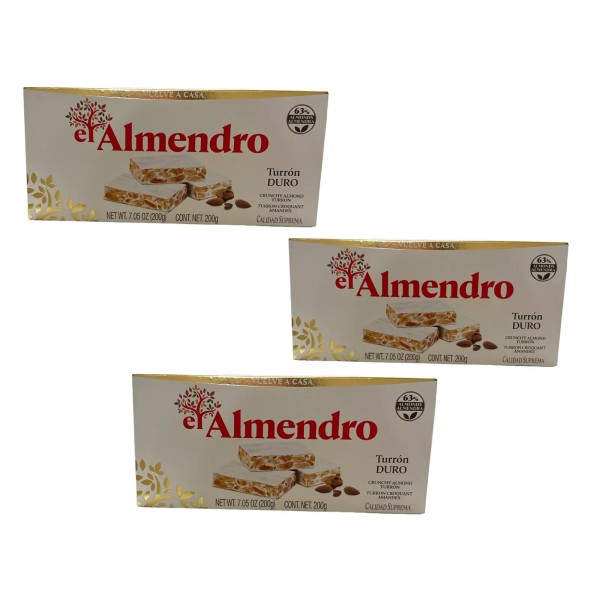 El Almendro Alicante Crunchy Almond Turron (PACK of 3, 7.05oz Each Bar)