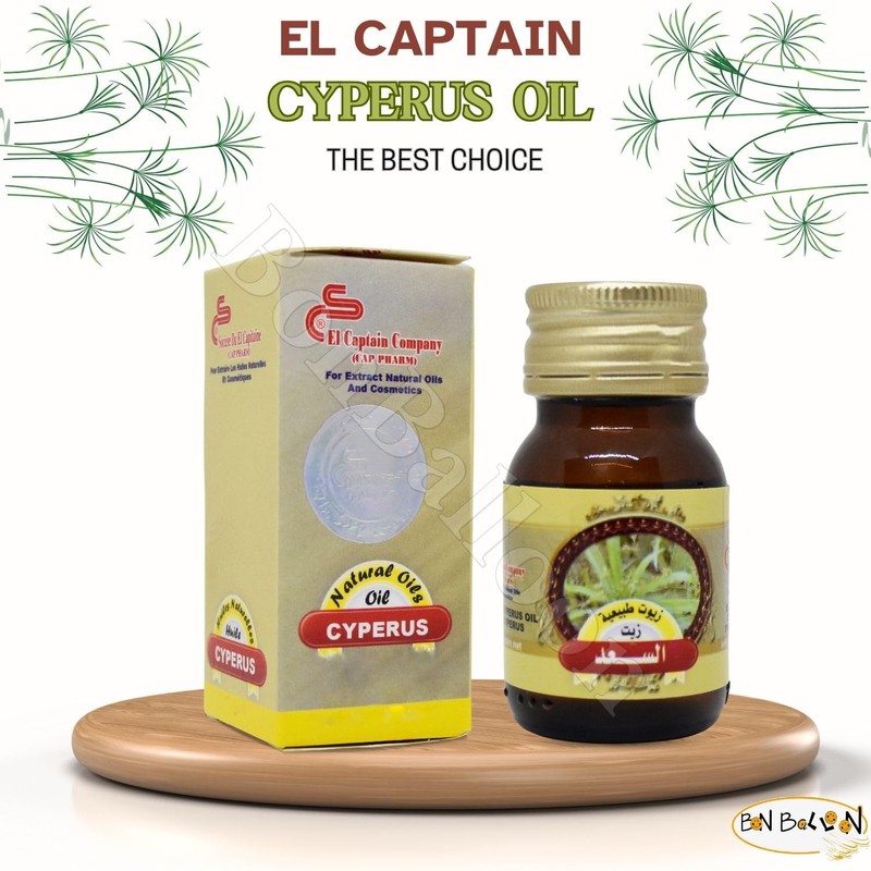 El Captain Cyperus Oil Natural Undiluted Pure AlCaptain Cold Pressed ElCaptain Premium Oils Captain Hair & Skin Care No Additives Non Gmo Kosher Halal (1 Pack = 1.01 oz / 30 ml) الكابتن زيت السعد حلال