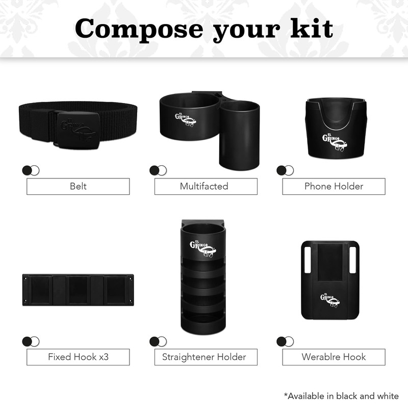 - 📦CONTENT - At home you will receive the El Gringo white fixed clasp. A special design accessory that can be attached to the wall. This accessory is composed of three sleds that will allow you to store the work equipment in an organized way, so as to give a more orderly look to the salon