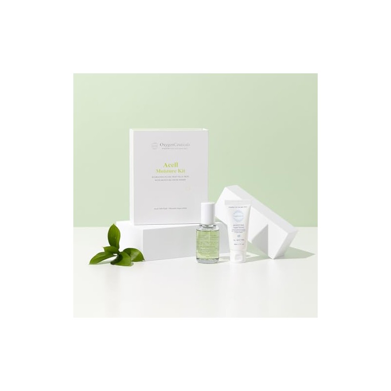 🌟 ⭐ El mejor juego de humectante para piel deshidratada | OxygenCeuticals Acell Moisture Kit | Acell-300 Fluid 30ml + Moisture Aqua Serum 30ml | Suero de ácido hialurónico y ampolla sin aceite ⭐ 🌟