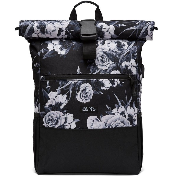 Ela Mo Women's Rucksack, School Backpack, Rolltop, Beautiful, Comfortable and Sophisticated, 18 L