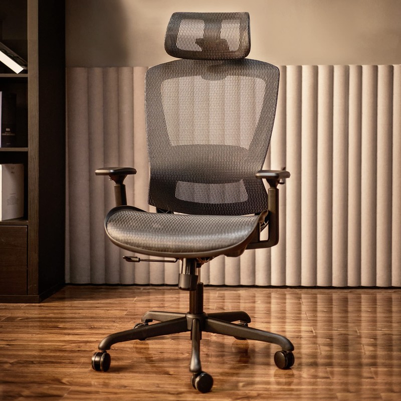 ELABEST Office Chair ELAMAX 1096 Cushion in Grey, Black Frame Grey Mesh