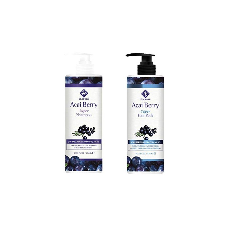 Elabore Acai Berry Super Hair Pack & Shampoo Set 16.06fl.oz/ 475ml