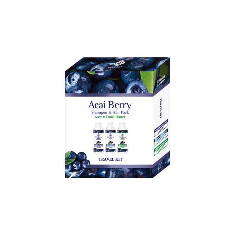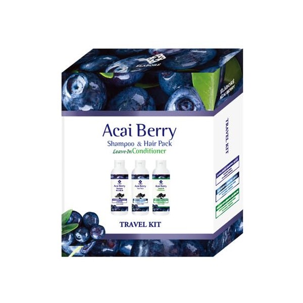 Elabore Acai Berry Travel Kit [Shampoo, Pack, Leave-in] 3oz each.