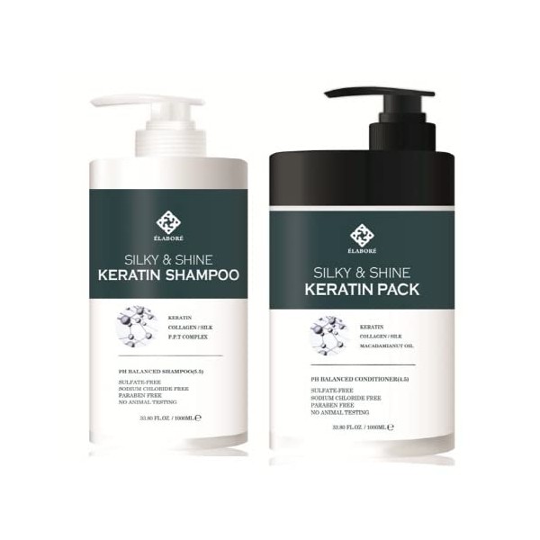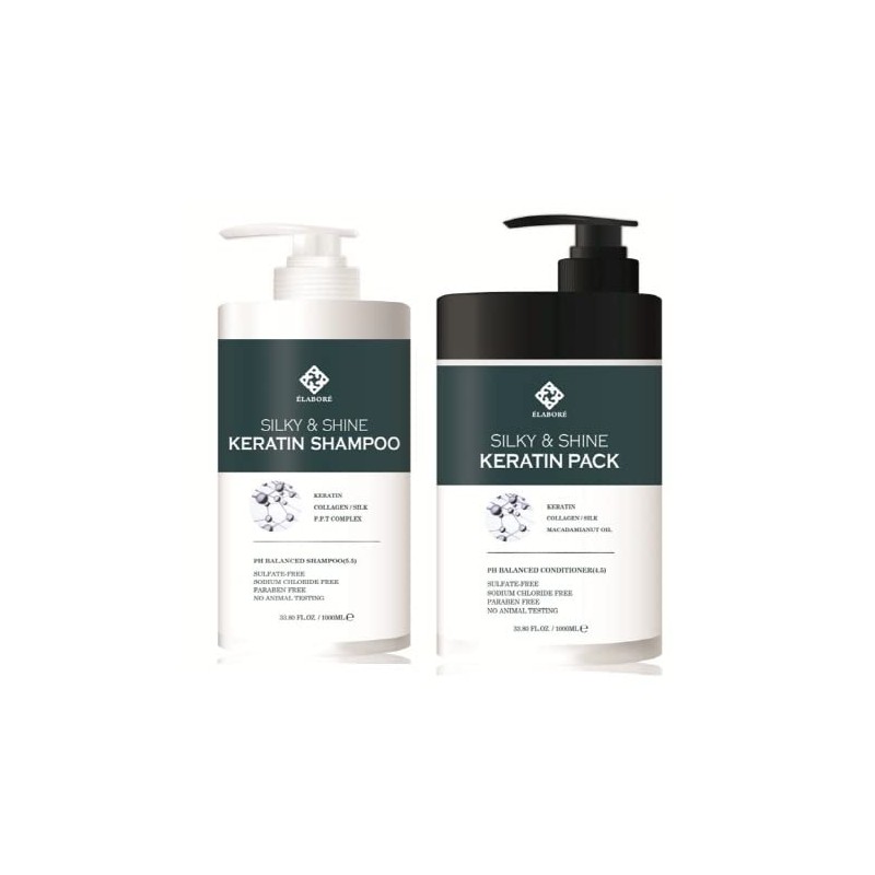 Elabore Silky & Shine KERATIN Shampoo & Pack SET 33.80fl.oz/ 1000ml