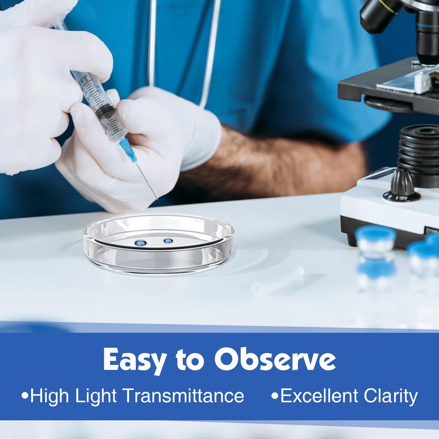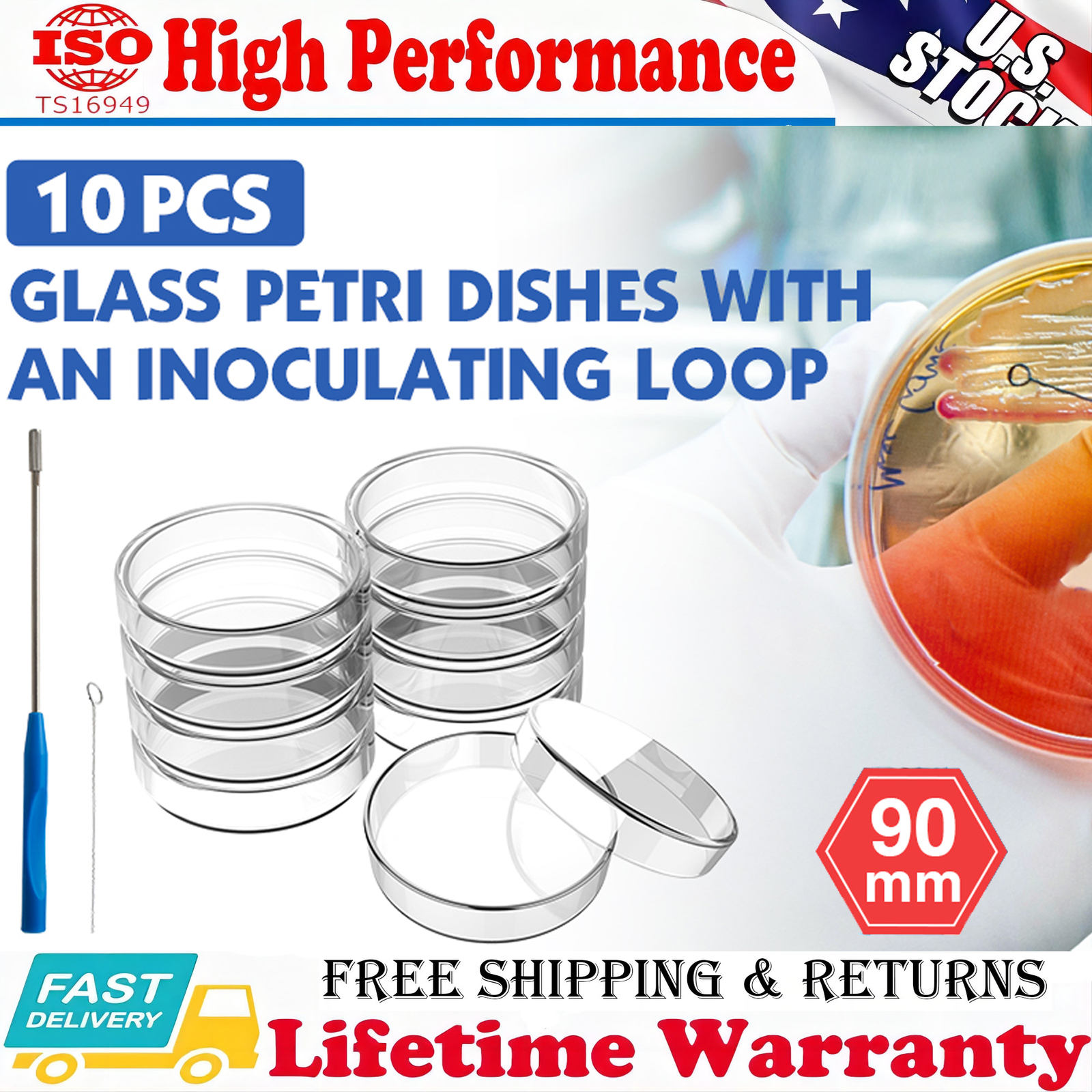 About this item (Other sellers sell non-autoclavable and non-reusable plastic products.) Easy to Observe: The petri dish has high clarity with no bubbles in the glass. You can observe the samples easily and clearly under the microscope in mycology cultivation. Even after several sterilization, it still maintains high light transmittance. Petri Dishes with Lid: The diameter of the lid is slightly larger than the plate by about 6 mm to allow air circulation and the agar petri dishes to be incubated placed upside-down to prevent water condensation. Packed with Inoculation Loop: The inoculation holder consists of a plastic handle and copper rod with chrome plated surface, the inoculating loop is made of nichrome. Ideal for lab cell and tissue culture. Carefully Packaged: We use PE foam and cardboard packaging to protect our petri dishes from damage in transit and to ensure that the product is delivered to you in good condition. If there is a problem with the product you receive, please contact us and we will deal with it as soon as possible.