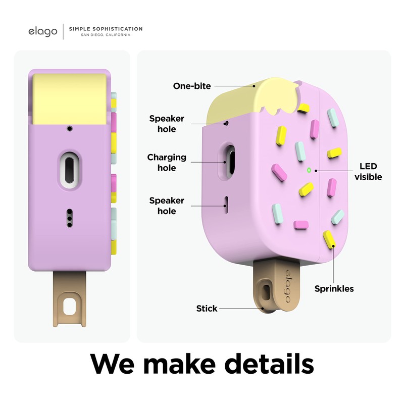 - WHETHER YOU ARE A FOODIE OR just a lover of ice cream, this case is PERFECT FOR EVERYBODY! Since the case was made EXACTLY FOR YOUR CHARGING CASE, you have DIRECT ACCESS TO ALL FUNCTIONS like WIRELESS CHARGING, with NO ISSUES. Carabiner is INCLUDED so that you can HANG the case from your backpack, purse, pants, etc.