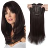 Elailite 18 Inch Hair Topper with Bangs, Synthetic Clip in Hair Toppers for Women, 6"x6" Large Base Hair Pieces Perfect for Women with Thinning Hair, Dark Brown