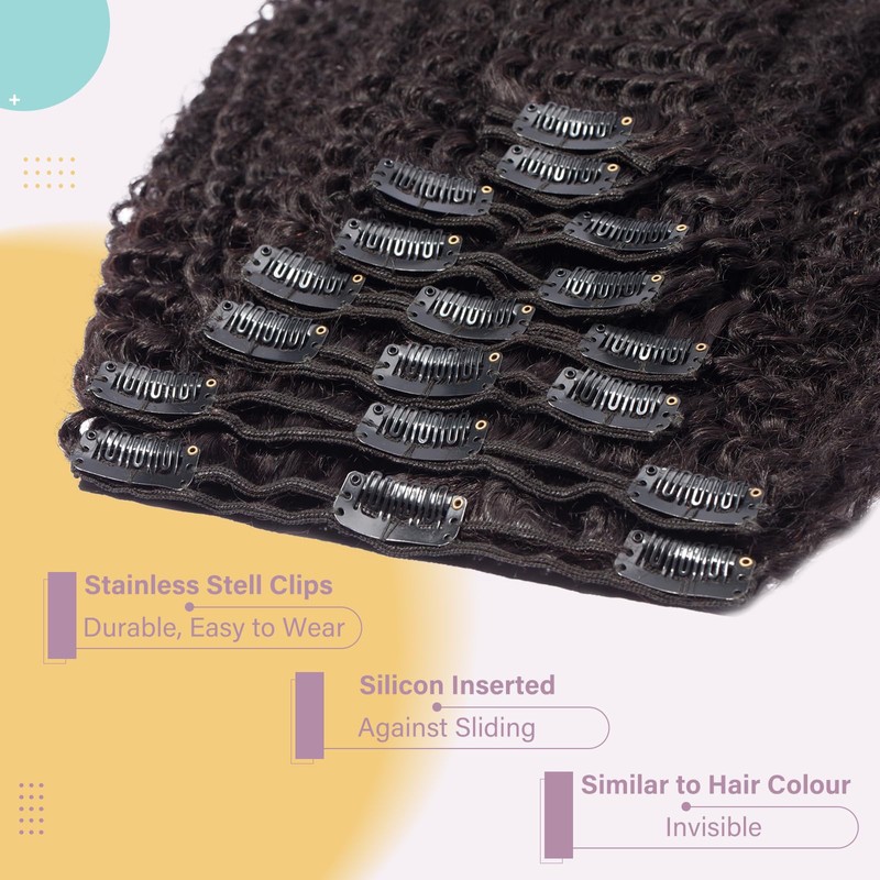 Elailite Afro Clip-In Extensions, Remy Clip-In Hair Extensions, 8 Pieces, Double Wefts, 18 Clips, Kinky Curly, 40 cm, 115 g, #1B Natural Black