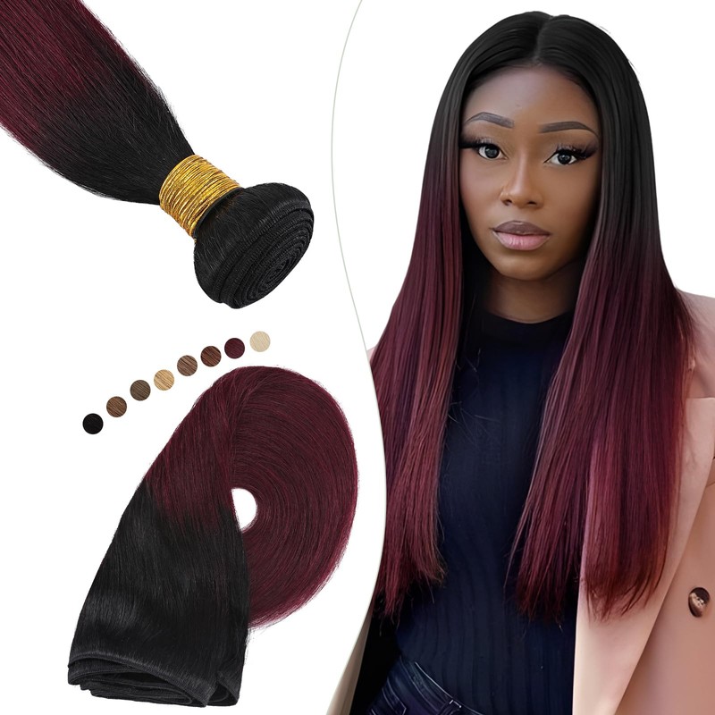 Elailite Bundle Extensions Real Hair #1BT99J Natural Black/Burgundy Red 55 cm Sew-in Hair Extensions Weft Brazilian 100 g