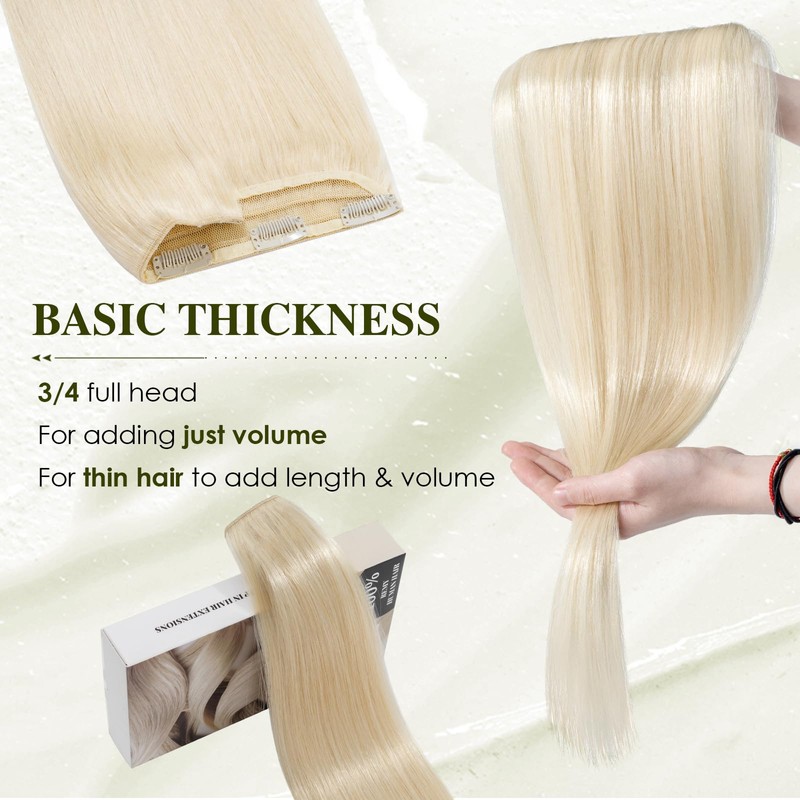 Elailite Clip-In Real Hair Extensions, #60 Platinum Blonde, 25 cm, Straight Clip-In Hair Extensions, Real Hair, 1 Weft, 40 g