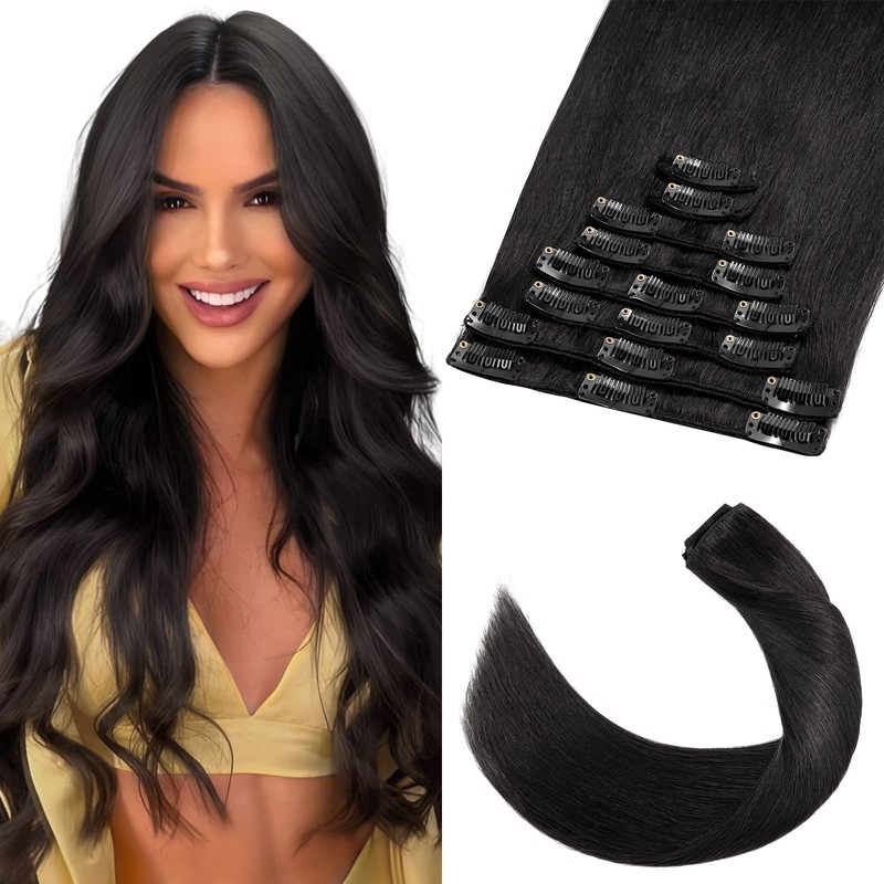 - 8-piece hair extensions: clip-in extensions are very fashionable today, the hair extensions with clips are pretty safe and friendly for your hair. We offer the most popular length: 40 cm, 50 cm, 60 cm. Blonde, brown, black foundationally, we also promote different attractive styles and colour.