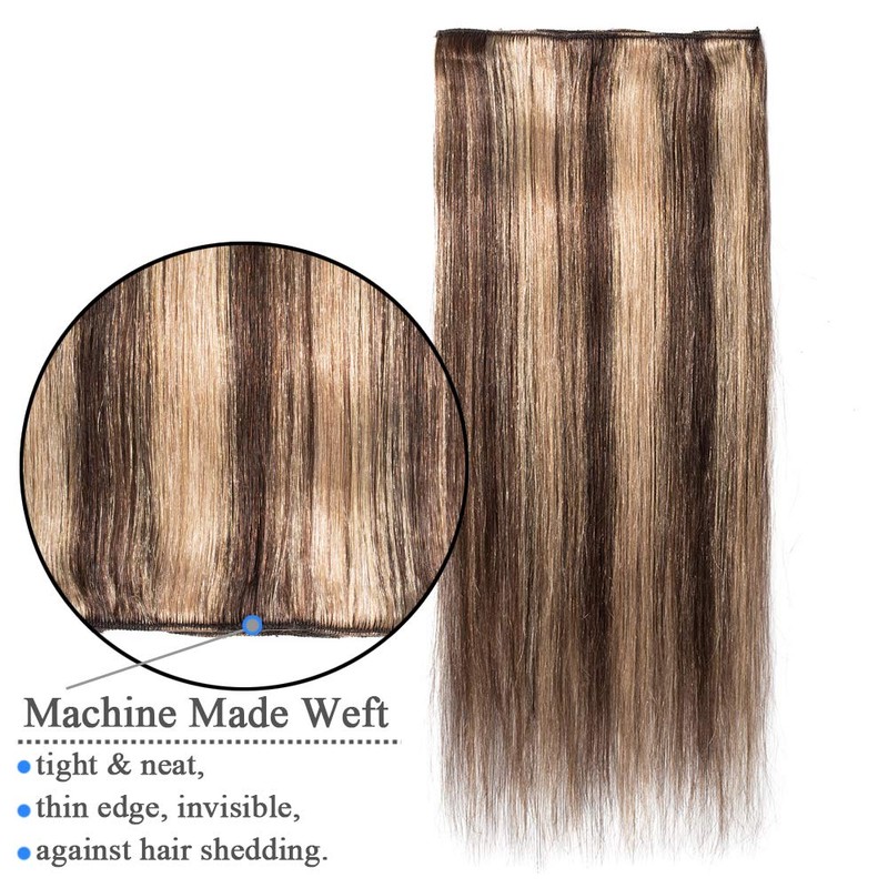 - Thin Thickness Hair Weft: 1 pack for thin hair or just for adding volume, 2-4 packs for thick hair.(Hair Colour: Mix #4/27 Medium Brown & Dark Blonde - Hair Length: 20 inch - Hair Weight: 70g)