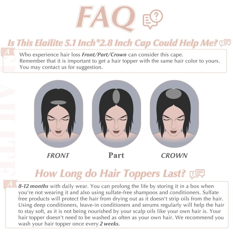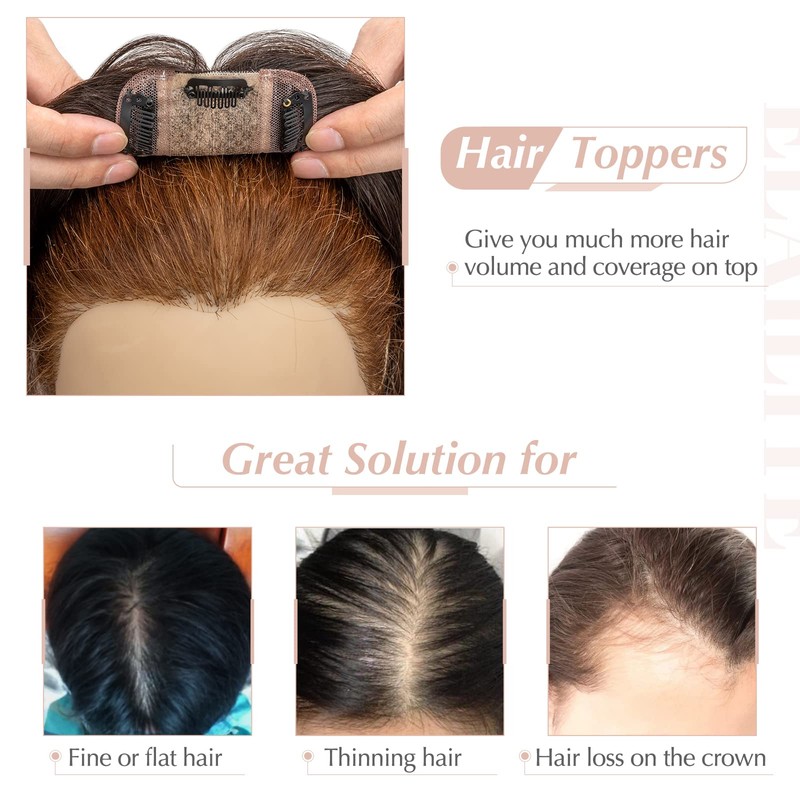 - Safe clips: 3 small stainless steel clips in the hair attach the hair toppers, or harmless to your scalp, is very easy to wear.