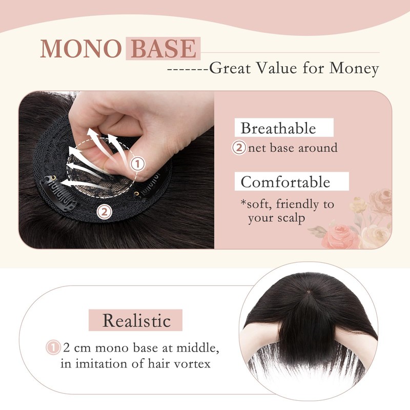 The base of the topper is made in imitation of part of the scalp where the hair is whorled, which is super natural & breathable.