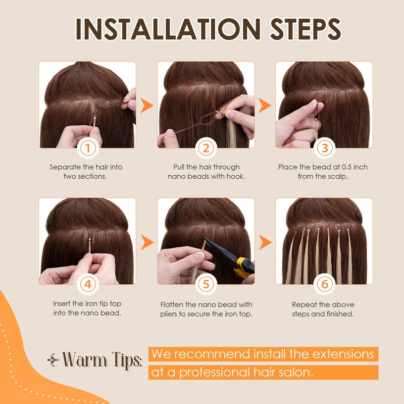 - 👍Safe & Healthy Hair Extensions: Attached by Nano Rings, Cold Fusion, No Heat or Glue is Required, Harmless to Your Natural Hair.