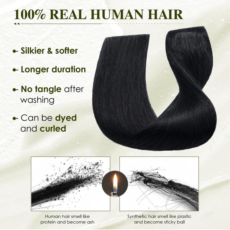 Elailite Real Hair Clip-In Extensions, 1 Weft, #1 Black, 50 cm, Straight Clip-In Hair Extensions, Real Hair, 50 g