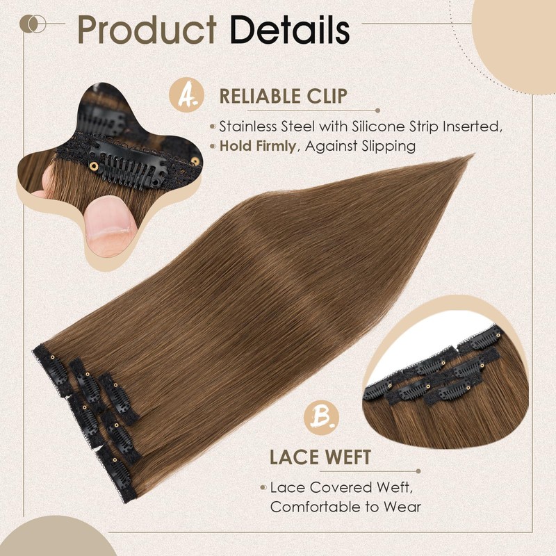 - 💎Elailite 6-Piece Clip in Hair Extensions Real Human Hair ⭕#04 Medium Brown ⭕22 Inch ⭕47g Lace Double Weft, Invisible Remy Hair Clip Hair Extensions