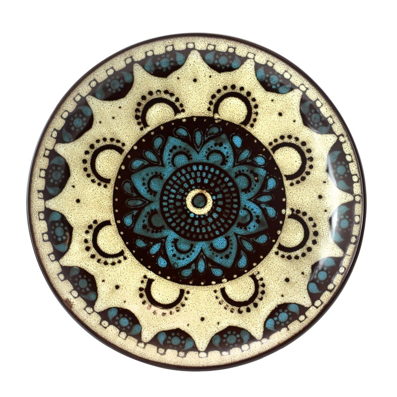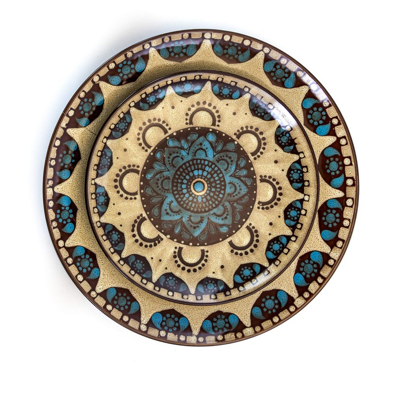 Elama Stoneware Dinnerware Collection, 16 Piece, Tan, Blue, Brown