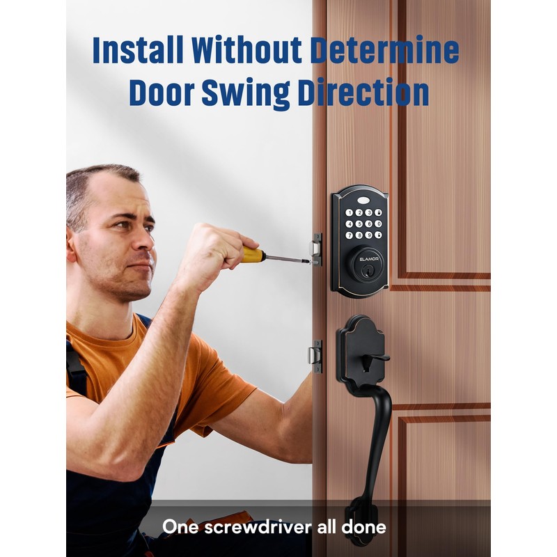 - Keyless Entry Door Lock with Handle Set: Enjoy a key-free lifestyle! The ELAMOR keypad deadbolt offers 50 customizable user codes, a master code, and comes with 2 backup keys. With its auto-lock feature, this advanced handle set ensures security and convenience for modern living