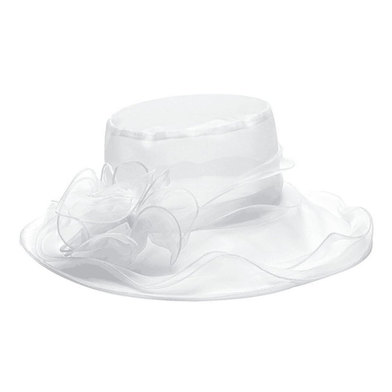 Elandy Women White Organza Church Dress Hat Tea Party Fascinator Derby Hat Flower Wide Brim Summer Sun Hat for Wedding