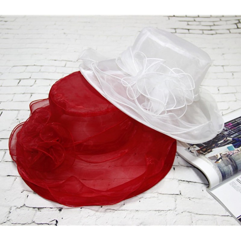 - Color:White; Hat Circumference:56~58cm/22~22.8inch; Brim Width:11cm/4.3inch; Height:10cm/3.9inch; Weight:60Gram(Organza Church Hat);Material:Polyester.