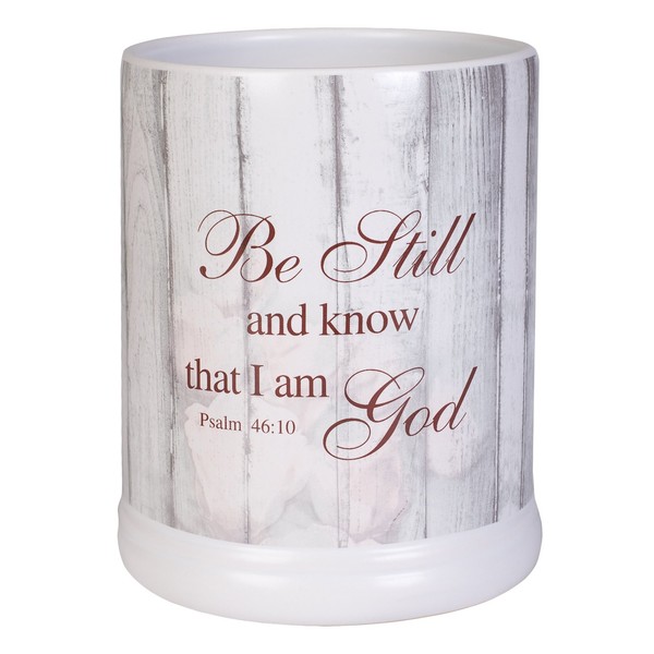 Elanze Designs Be Still and Know Distressed Wood Design White Ceramic Stone Jar Warmer