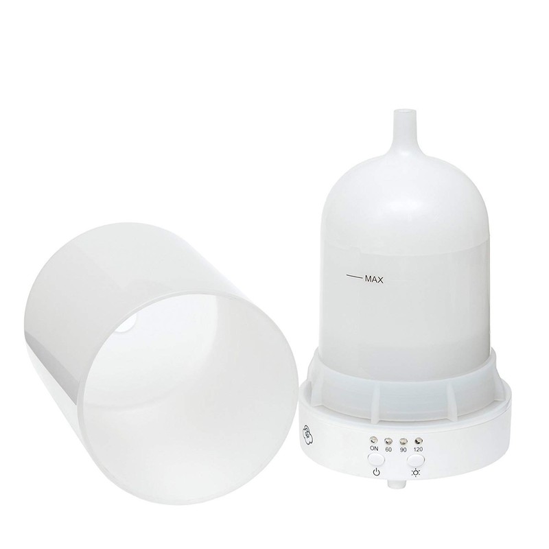 • Diffuser cover is made of a classic frosted glass; Water and oil basin made of thick plastic casing; Buttons and settings safe and easy to use in pedestal base; UL product safety approved.