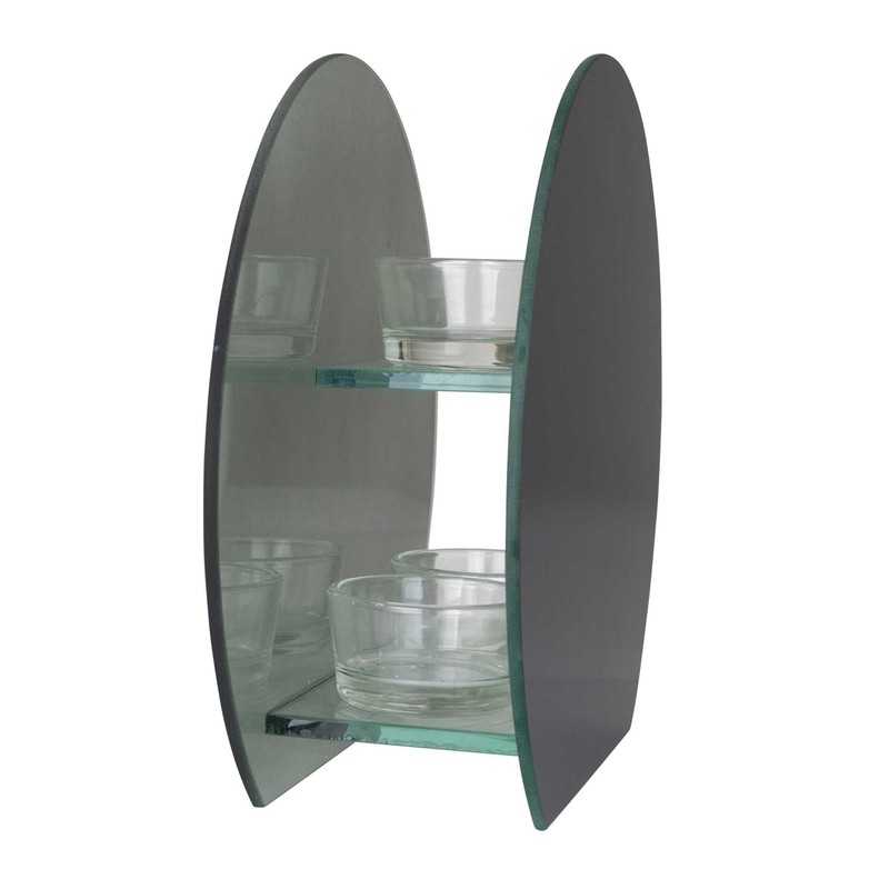 - Glass circles are frosted outside, mirrored inside to enhance the soft light shining from the three (included) LED tealights