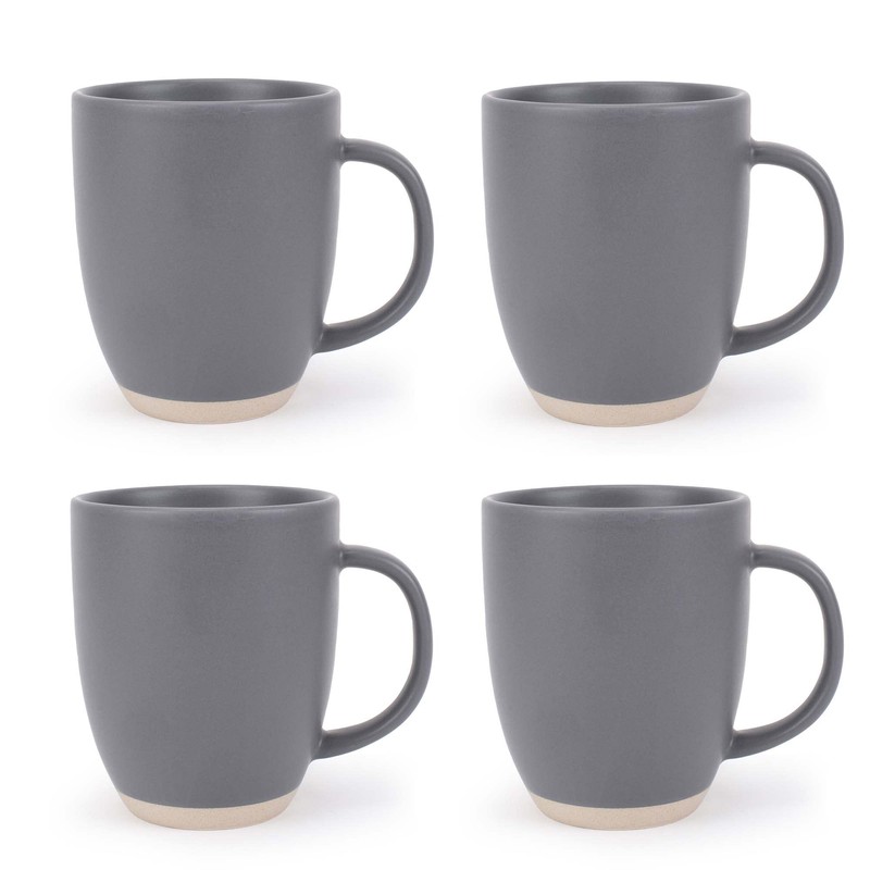 Elanze Designs Raw Clay Bottom Charcoal Grey 13 ounce Ceramic Coffee Mugs Set of 4