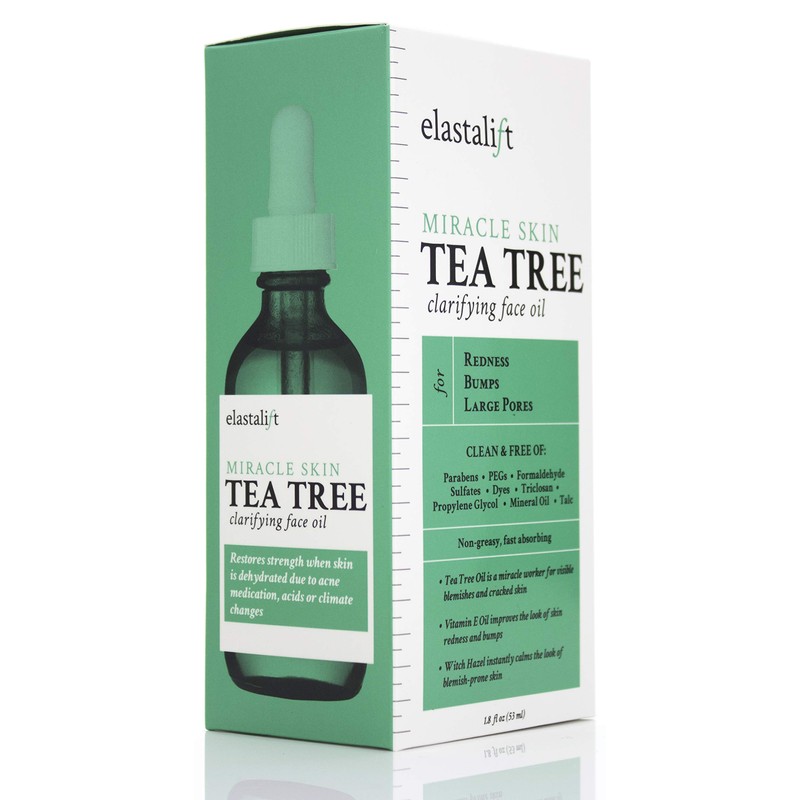 Elastalift Tea Tree Oil Facial Spot Treatment W/Witch Hazel Clarifying Tea Tree Oil For Face Helps Target Redness, Acne, Bumps, Dry Itchy Skin, & Large Pores. Non-Irritating Formula, 1.8 Fl Oz