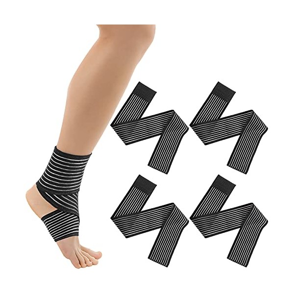 Elastic Calf Compression Bandage Leg Compression Sleeve for Men and Women, Compression Wraps Lower Legs for Stabilising Ligament, Joint Pain, Sport, Adjustable Black (4 Pieces,70 cm)