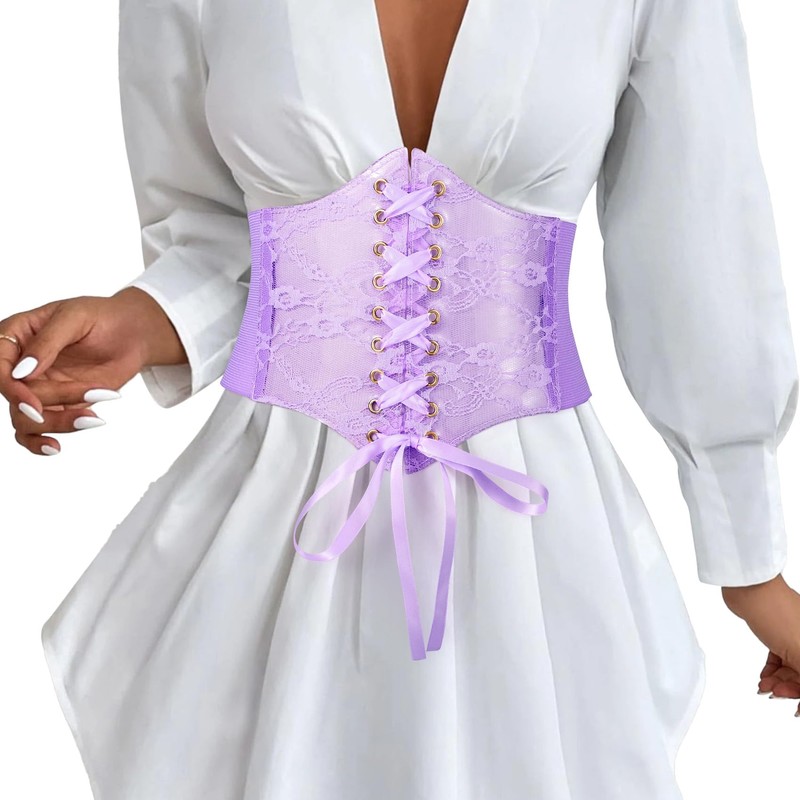 Elastic Corset Belt for Women Costume Wide Lace up Corset Waist Belt, Purple, M