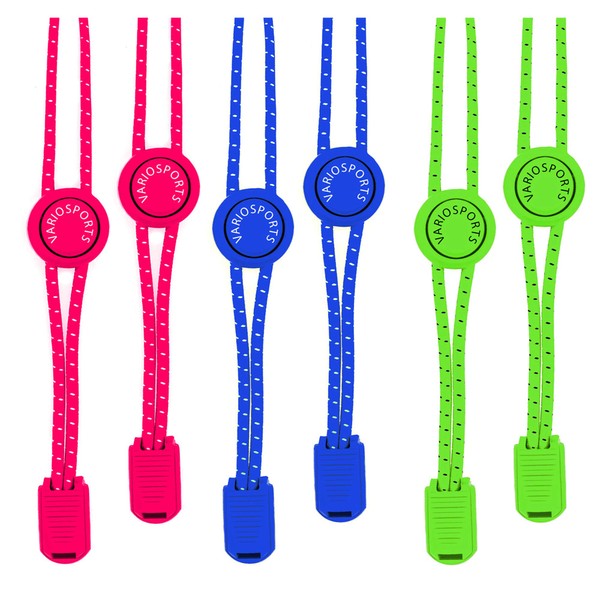 - Premium quick-fastening system. Quick and easy to put shoes on or take them off. Pack of 3. The elastic band or cord can be adjusted according to your wishes: Colours: white, black, green, blue, grey, anthracite, neon, pink.