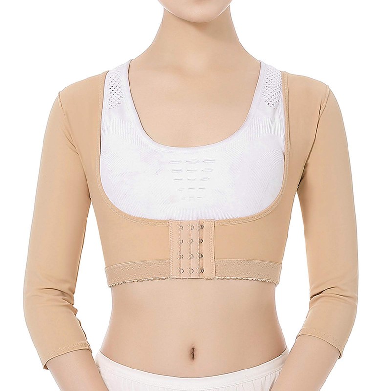 Elastic Posture Shaper Slimming Shapewear Upper Arm Shaper Wrap Compression Sleeves Back Posture Corrector Women Girls (XL)