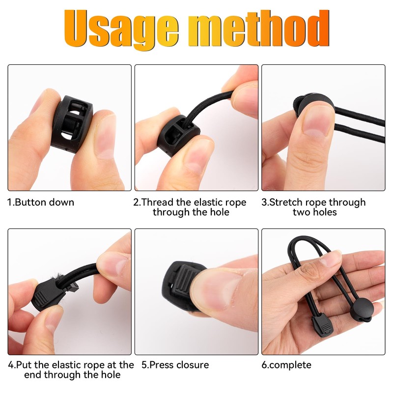 - Durable and wear-resistant: our elastic rubber rope is made of natural latex with excellent elasticity and tension, the surface of the rubber cord is wrapped with polypropylene material, which increases wear resistance and can protect the inner rubber rope from wear. Cord locks 2 holes are made of durable plastic, are robust and durable.