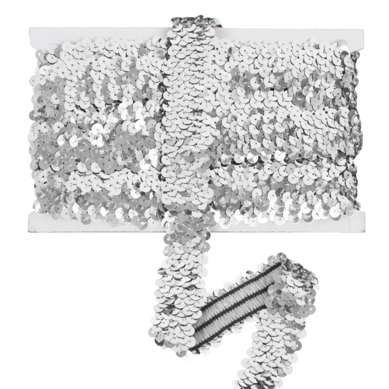 Covered in full shimmering sequins, this trim is designed to catch the light and create eye-catching effects. The stretch smocking band fabric provides both durability and flexibility, making it easy to incorporate into various DIY projects.