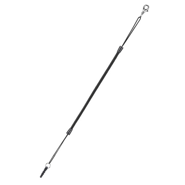 - High strength plastic spring lanyard, stainless steel rings, aluminum lobster clasp