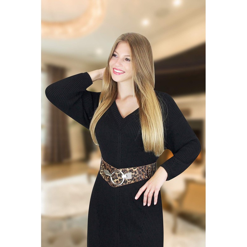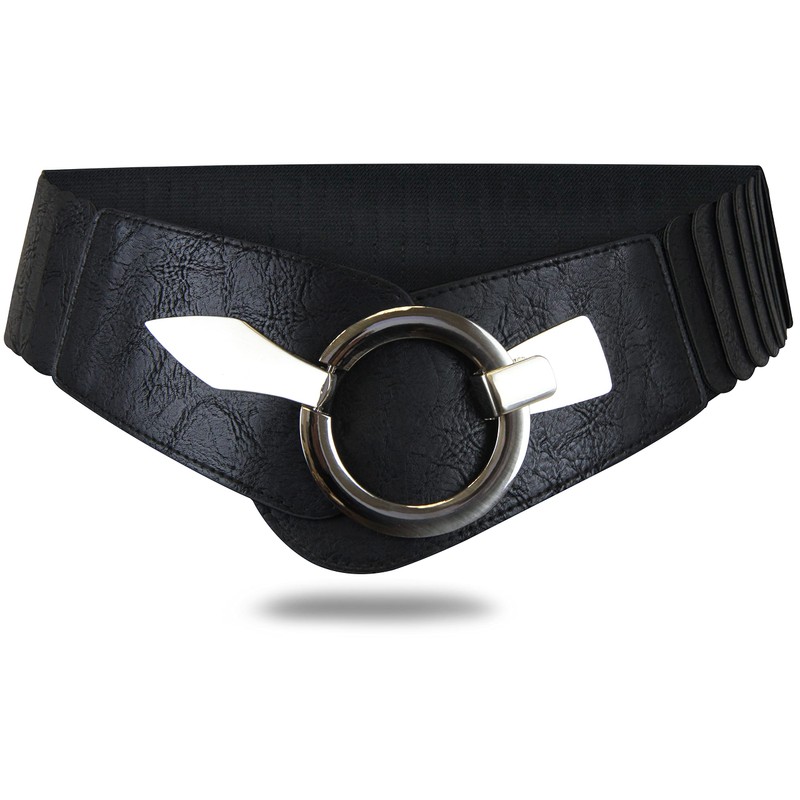 Elastic Women's Waist Belt, Approx. 6 cm-Wide Waist Belt with Silver Ring Buckle - black