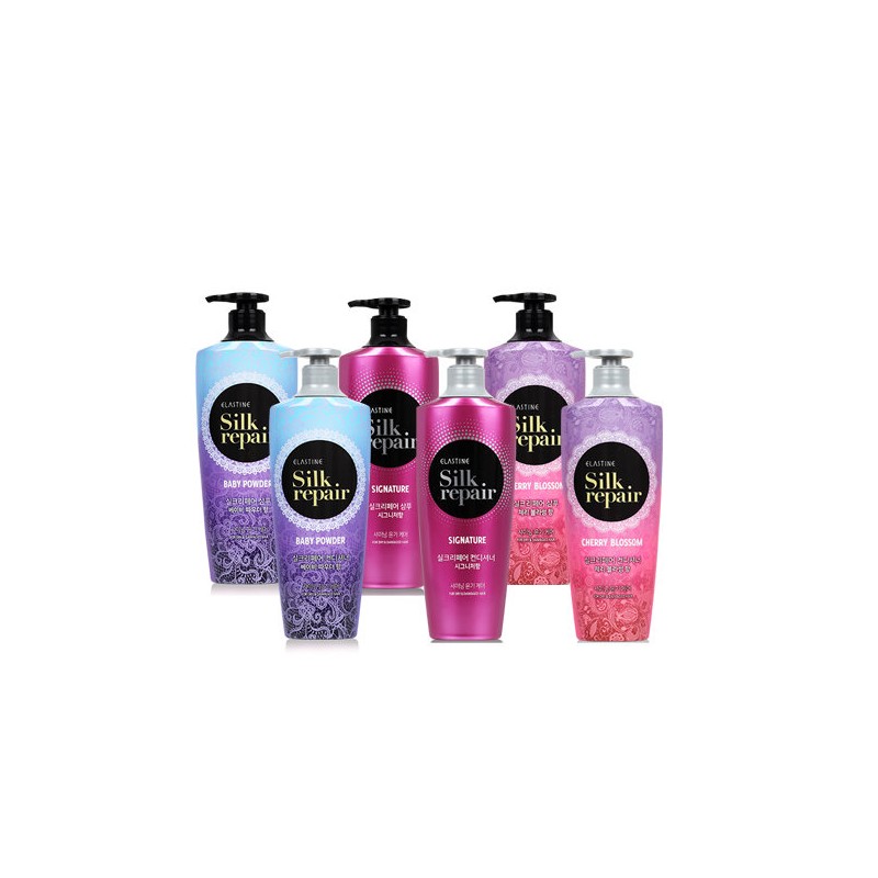 Elastine Silk Repair Perfect Shining Gold Silk Shampoo/Conditioner 550ml, Cherry Blossom Conditioner 550ml / 엘라스틴 실크리페어 퍼펙트 샤이닝 골드실크 샴푸/컨디셔너 550ml, 체리블라썸 컨디셔너550ml