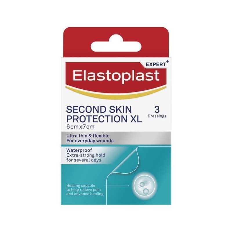 Introducing accelerated wound healing with Elastoplast Second Skin Protection XL Dressings. 3 ultra-thin, flexible self-adhesive dressings that move with you like a second skin. Designed to provide protection and treatment for everyday wounds. These waterproof and discreet dressings create a protective barrier that seals against dirt and bacteria, ensuring a clean environment for faster healing. Experience soothing relief from pain as the plasters accelerate the natural healing process, offering comfort and extra strong hold for at least 72 hours. The dressings do not contain latex, and provides reliable protection and comfort for minor wounds. Directions: Please read enclosed leaflet before use. Diabetics and those with poor circulation should consult a doctor before use. Stop the bleeding and cleanse wound thoroughly before applying the product. Product is designed to stay on until it starts to detach.