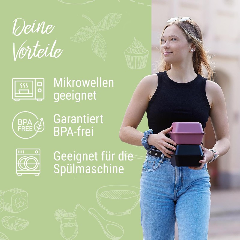 - REUSE, REDUCE, RECYCLE – After the durable lunch box has been used out, they are recycled free of charge into a new sustainable product, it is 100% recyclable and of course BPA-free, which avoids unnecessary waste