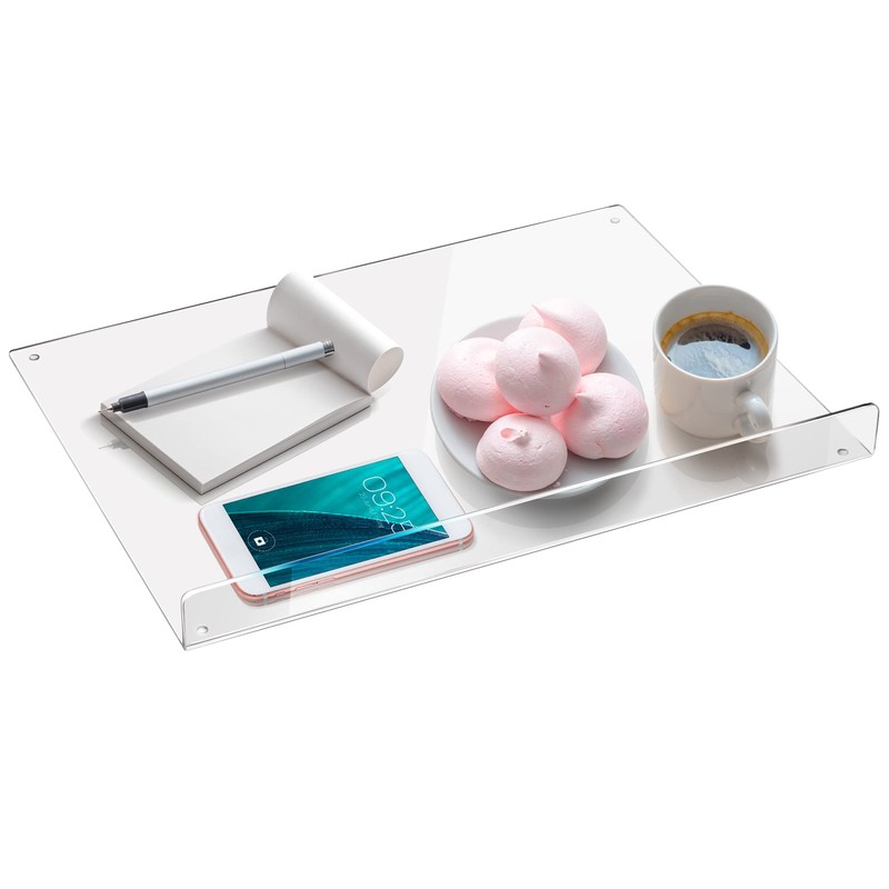 Elavain Clear Acrylic Board Holder Tray with Front Rail | Perfect as a Closet Shelf Organizer, Coffee Condiment Organizer for Countertop & Sofa Tray Table | Heavy Duty, Modern & Shatter Resistant!