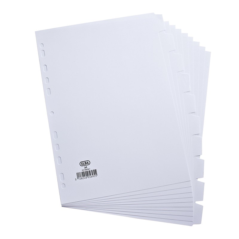 Elba A4 10-Part Card File Dividers, 1 Set White Tabbed Folder Dividers