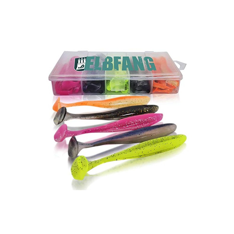 Elbfang© 20-Piece Rubber Fish Set for Zander (Pike-Perch) Fishing + 50 Snap Swivels - Including Artificial Bait Box