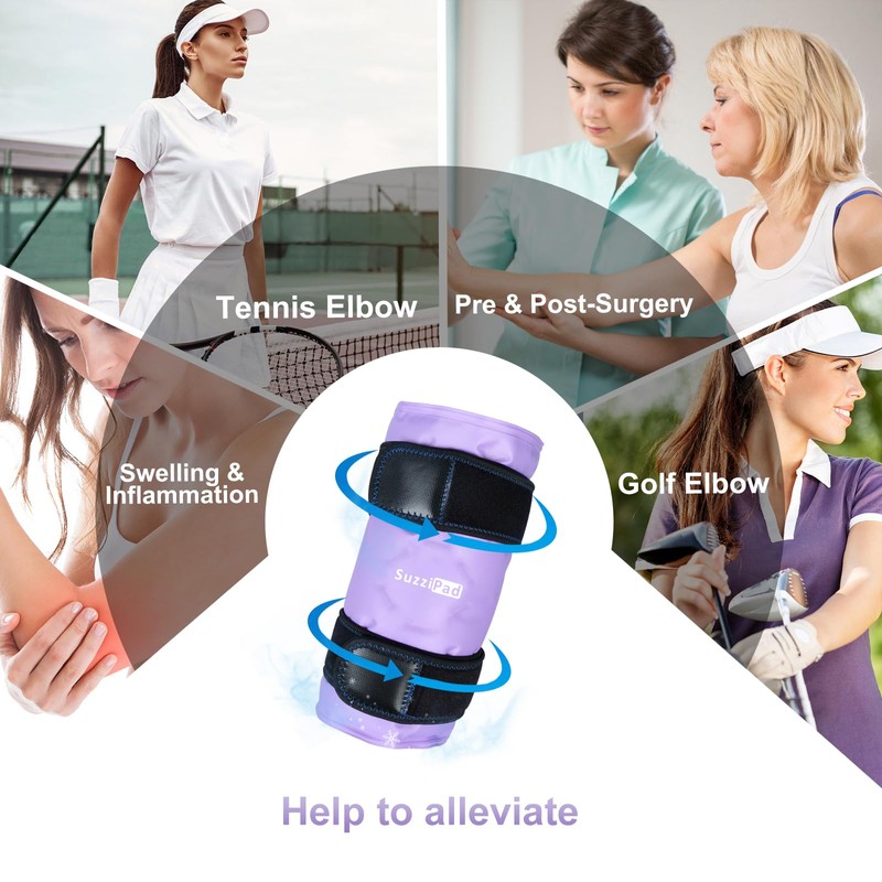 - Elbow Pain Relief Expert: Thanks to the -13°F freezing point and 30% more gel-filled, you can enjoy 20 minutes of cold therapy after refrigeration. SuzziPad reusable ice packs for golf elbow or elbow tendonitis relief, muscles and joints from inflammation, swelling, strains, sprains, and general pain management. It also helps muscles recover after strenuous activity, injury, or surgical procedure and muscle recovery after the gym. It is The best choice for tennis and golf players!